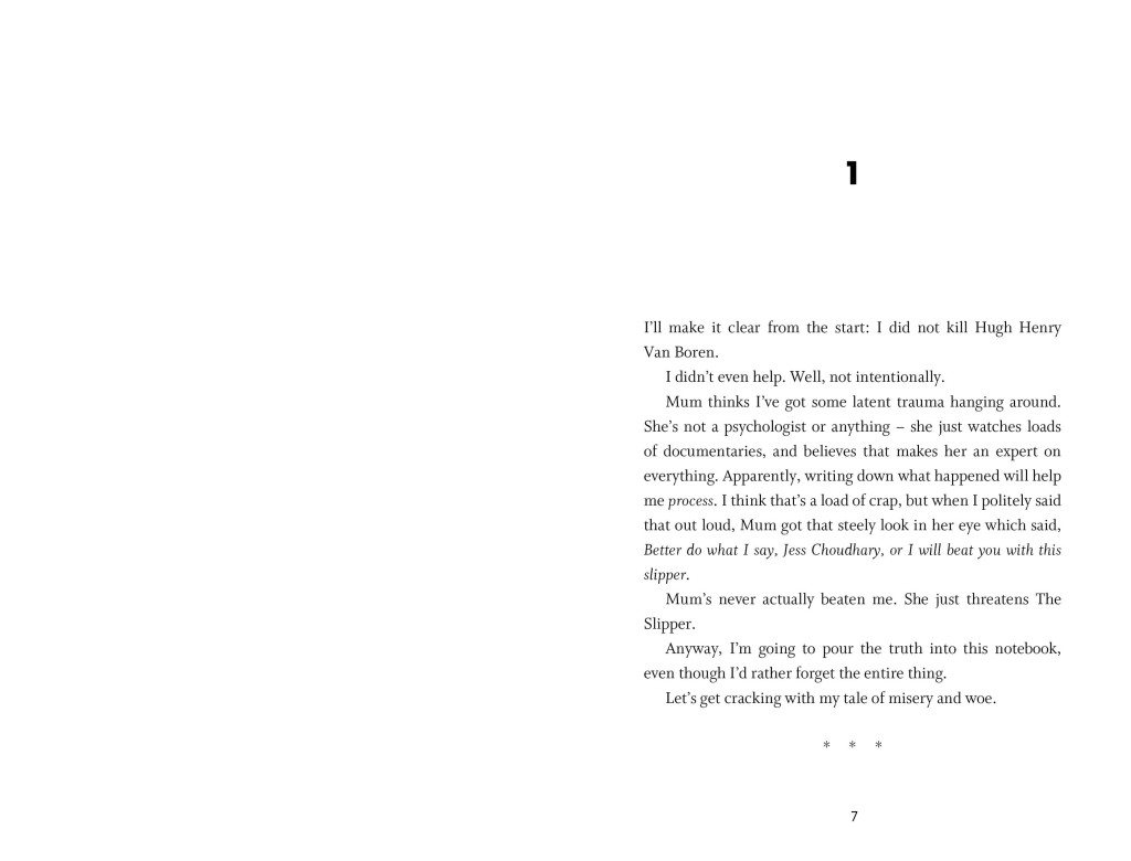 Ez a YA-thriller Jess Choudhary életébe enged bepillantást: a gazdag bentlakásos iskolában tanuló lánynak meg kell védenie magát, amikor a legnépszerűbb diákot, Hugh Henry Van Borent, holtan találják — méghozzá ugyanolyan módon, mint ahogy azt Jess korábban egy rövid történetében leírta. Majd rejtélyes, névtelen üzenetek érkeznek hozzá, amelyek arról tanúskodnak, hogy a gyilkosság inspirációt merített az írásából. A történet feszültsége fokozatosan nő, ahogy Jess egyre közelebb kerül az igazsághoz — és saját veszélyéhez is. Közben a regény erőteljesen tematizálja az osztály- és faji különbségeket is, hiszen Jessnek nemcsak a gyilkost kell kiderítenie, hanem saját identitását és a környezetével való viszonyát is fel kell fedeznie. A LoveReading4Kids szerint mélyebb mondanivalója van a történetnek: nem csupán rejtély, hanem igazság, barátság és társadalmi feszültségek is fontos szerepet játszanak.