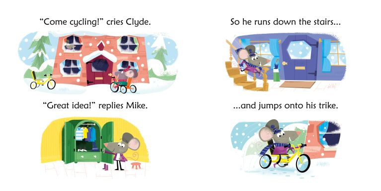 Mike and Clyde the mice can't wait to ride their tricycles through the freshly fallen snow. But when their trikes hit the ice, things start to get slippery! This funny rhyming story makes learning phonics fun for beginner readers.